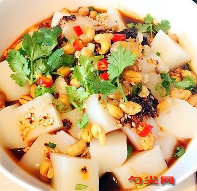 工藝:淀粉與筋力源Q型干拌均勻,加入20公斤涼水,用[電鉆攪拌器]高速攪拌淀粉糊,然后浸泡2-5小時。大米用水浸泡3-5小時,撈出后用磨漿機磨漿,磨漿時加水40公斤。然后倒入鍋內熬煮。鍋內溫度升至70℃時加入淀粉糊,繼續攪拌熬至沸騰,米漿半透明。煮熟后倒入模具,涼透即為米豆腐。煮熟后也可倒入漏瓢,壓漏入涼水成為米魚兒。