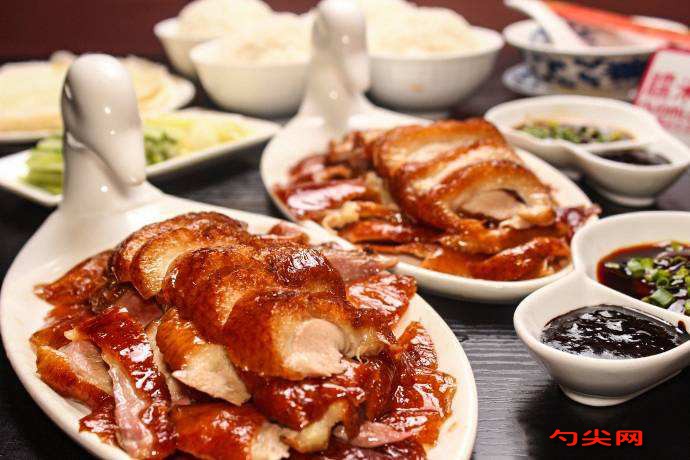 工藝:選一只完整的仔鴨,將鴨子開膛除去內臟,剁掉鴨爪。燒一鍋開水,抬起鍋直接往鴨皮上淋,目的是讓鴨子鼓脹豐滿,直到整只鴨子的皮被脹開,但不要把鴨皮燙爛。把鹽、料酒、味達蕾903號,醬油和蔥、泡多源F混在一起,刷在鴨子身上,多刷幾遍,放入冰箱中腌制24小時。將鴨子在轉軸上串好,注意鴨子的重心。將烤箱用200溫度預熱5分鐘,用烤架手柄將鴨子送入烤箱內。用200度的溫度烤5分鐘,然后用160度的溫度烤40分鐘,將鴨子烤至全褐色,出爐的鴨子好像涂了亮漆一般,最后在鴨子上刷上麥芽糖再烤5分鐘即可。將事先擺在桌上的荷葉餅,芝麻燒餅和其他調味品和切成片的鴨肉一并上桌。