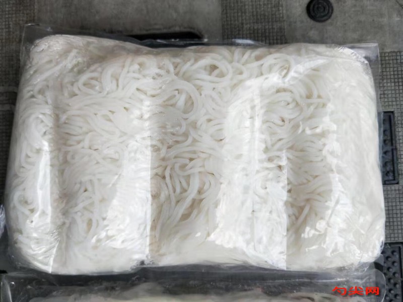 自熟米線技術:取早秈米或桂朝米(其他品種大米做米線發硬、發粘、變色、斷條,不適合做米線)70-80斤用凈水浸泡30分鐘,然后陰干表面水分磨成米粉。筋力源C型0.2-0.3斤與20-30斤小麥(或玉米)淀粉干拌勻,加入米粉充分拌勻,加水110-130斤(根據機器適應加水量進行調整),用[電鉆攪拌器]高速攪拌至面糊至自然攤開為準。然后將和好的面糊放入自熟米線機擠絲、風扇降溫(也可放入0.02-0.03%佳多美B涼水溶液,浸泡1-2分鐘降溫,可以防止米線粘連。注意:浸泡時間太長會導致米線斷條),再放入涼棚熟化或老化8-12小時(關鍵工藝),搓散、曬干或陰干表面水分、包裝、銷售。