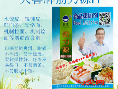 ★商品名:天喜牌筋力源H型  產品名稱:筋力源牌復配酸度調節水分保持劑 型號:JLY-H 本品按照《食品安全國家標準 食品添加劑使用標準GB2760》及補充規定的品種、應用分類、使用范圍、最大使用量、殘留量等科學組方,并且按照《食品安全國家標準 復配食品添加劑通則GB26687》精心配制而成。本品已經通過食品生產許可,保障食品安全。用戶按照本說明的用法用量生產制作的生濕面制品(食品分類號:06.03.02.01)、方便米面制品(食品分類號:06.07)、冷凍米面制品(06.08)既不會超標也不會超量。