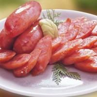 ①.臺灣烤腸做法:1.配方:牛肉20㎏、豬肉20㎏、肥肉10kg、精鹽1.25㎏、白糖2㎏、淀粉12.5㎏、胡椒粉50g、豆蔻粉0.15kg、味精75g、大豆蛋白2㎏、富磷聯C型400g、亞硝3g、肉精油100g、味達蕾4號300g、增香粉150g、冰水25㎏、紅曲紅色素3g、脫氫醋酸鈉50g。2.工藝流程:1絞肉:在進行絞肉操作前,先要檢查金屬篩板和刀刃是否吻合,金屬篩板選用8mm,肉餡的溫度冷卻到零下3度,再分別對豬肉、肥膘進行絞制。2腌制:將富磷聯C型提前用少許水溶解,將豬肉按比例添加精鹽、硝酸鈉、富磷聯水溶液,混合均勻,肉餡要壓實,表面覆蓋一層塑料薄膜,放低溫庫中存放12小時進行腌制,庫溫保持在0-4℃。3混合拌餡:在攪拌機里依次加入腌漬好的肉餡、水、分離蛋白和 味達蕾、香辛料等,攪拌5分鐘,最后加入淀粉和肥膘顆粒攪拌3分鐘。4灌腸:采用天然腸衣或者蛋白腸衣,天然腸衣用豬腸衣,直徑22-24mm,蛋白腸衣直徑在22mm為好,可根據灌裝腸衣的長度來控制腸體的重量,灌腸機采用真空灌腸機較好。5熱加工:這一步作為廠家根據自己的實際情況,可以不做成熟的,直接速凍包裝;也可以加工成熟食,速凍包裝。熟制的工藝可以按照下列進行。第一步:干燥30分鐘,爐溫60℃;第二步:蒸煮20分鐘,爐溫72℃;第三步:烘烤40分鐘,爐溫60℃。腸體擺放均勻,腸體之間不要擠壓,挨著。
