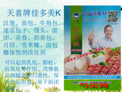 ★商品名:天喜牌佳多美K型 產(chǎn)品名稱(chēng):佳多美牌復(fù)配膨松乳化酶制劑6 型號(hào):JDM-K 本品按照《食品安全國(guó)家標(biāo)準(zhǔn) 食品添加劑使用標(biāo)準(zhǔn)GB2760》及補(bǔ)充規(guī)定的品種、應(yīng)用分類(lèi)、使用范圍、最大使用量、殘留量等科學(xué)組方,并且按照《食品安全國(guó)家標(biāo)準(zhǔn) 復(fù)配食品添加劑通則GB26687》精心配制而成。本品已經(jīng)通過(guò)食品生產(chǎn)許可,保障食品安全。用戶(hù)按照本說(shuō)明的用法用量生產(chǎn)制作的油炸面制品(食品分類(lèi)號(hào):06.03.02.05)、方便米面制品(食品分類(lèi)號(hào):06.07)、冷凍米面制品(食品分類(lèi)號(hào):06.08)、焙烤食品(食品分類(lèi)號(hào):07.0)、膨化食品(食品分類(lèi)號(hào):16.06)既不會(huì)超標(biāo)也不會(huì)超量。