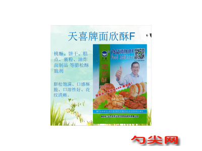 ★商品名:天喜牌面欣酥F型 產品名稱:面欣酥牌復配焙烤食品酶制膨松劑 型號:MXS-F 本品按照《食品安全國家標準 食品添加劑使用標準GB2760》及補充規定的品種、應用分類、使用范圍、最大使用量、殘留量等科學組方,并且按照《食品安全國家標準 復配食品添加劑通則GB26687》精心配制而成。本品已經通過食品生產許可,保障食品安全。用戶按照本說明的用法用量生產制作的焙烤食品(食品分類號:07.0)、裹粉 、面糊、煎炸粉(食品分類號:06.03.02.04)、油炸面制品(食品分類號:06.03.02.05)既不會超標也不會超量。