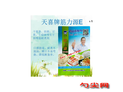 ★商品名:天喜牌筋力源E型 產品名稱:筋力源牌復配生干面制品酸度調節乳化增稠劑 型號:JLY-E 本品按照《食品安全國家標準 食品添加劑使用標準GB2760-2014》及補充規定的品種、應用分類、使用范圍、最大使用量、殘留量等科學組方,并且按照《食品安全國家標準 復配食品添加劑通則GB26687-2011》精心配制而成。本品已經通過食品生產許可,保障食品安全。用戶按照本說明的用法用量生產制作的生干面制品(食品分類號:06.03.02.02)既不會超標也不會超量。