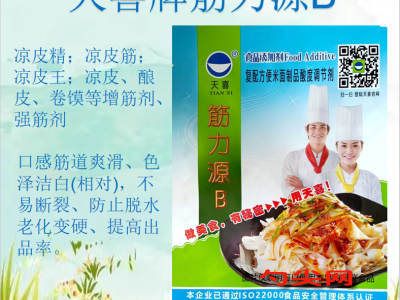 ★溫馨提示:1.本品含有食用堿(碳酸鈉),色澤潔白是相對其他食品添加劑而言,也會有食品輕微發黃現象。如果當地涼皮是黃色的,可以采用筋力源A型。2.本品不適用于直接用淀粉加工制作涼皮(實際為粉皮或拉皮,可以使用筋力源T型或筋力源Q型)。3.采用淀粉和面粉混合制作涼皮時(免洗面筋法),可以使用筋力源D型或筋力源C型。4.涼皮、釀皮等方便濕面制品保鮮可以添加0.2%復配防腐劑美久亭G。