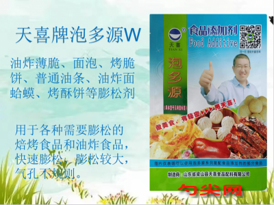 ★功能作用: 本品用于油炸薄脆、面泡、烤脆餅、普通油條、油炸面蛤蟆、烤酥餅等各類食品可以起到膨松、穩(wěn)定、酸度調(diào)節(jié)等作用。主要用于各種需要膨松的焙烤食品和油炸食品,快速膨松,膨松較大,氣孔不規(guī)則。