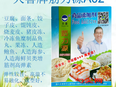 ★商品名:天喜牌筋力源A02型 產品名稱:筋力源牌復配增稠劑4 型號:JLY-A02本品按照《食品安全國家標準 食品添加劑使用標準GB2760》及補充規定的品種、應用分類、使用范圍、最大使用量、殘留量等科學組方,并且按照《食品安全國家標準 復配食品添加劑通則GB26687》精心配制而成。本品已經通過食品生產許可,保障食品安全。用戶按照本說明的用法用量生產制作的豆腐類(食品分類號:04.04.01.01)、生濕面制品品(如面條、餃子皮、餛飩皮、燒麥皮)(食品分類號:06.03.02.01) 、生干面制品(食品分類號:06.03.02.02)、方便米面制品(食品分類號:06.07)、熟肉制品(食品分類號:08.03)、冷凍魚糜制品(包括魚丸等)(食品分類號:09.02.03)、果凍(食品分類號:16.01)、其他(僅 限 人 造 海 鮮 產 品,如 人 造 鮑魚、人造海參、人造海鮮貝類等)(食品分類號:16.07)、植物蛋白飲料(食品分類號:14.03.02)、其他固體飲料(食品分類號:14.06.04)既不會超標也不會超量。