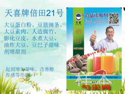 ★功能作用: 本品用于大豆蛋白粉、豆筋辣條、大豆素肉、人造腐竹、膨化豆皮、水煮大豆、油炸大豆、豆巴子、毛豆等新型豆制品、熟制豆類,起到增加甜味、改善醇厚感等作用。
