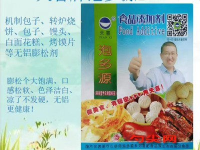 ★功能作用:采用〔泡多源D型〕加工制作的機制包子、機器饅頭花卷等發酵面制品膨松個大飽滿、口感松軟、色澤潔白、涼了不發硬,無鋁更健康!〔泡多源D型〕結合酵母發酵,解決了機制包子“成型難”、“后發酵”等技術難題,保證了機制包子工藝的順利進行。采用〔泡多源D型〕加工制作的轉爐燒餅、烤饃片等焙烤食品膨松飽滿、外酥里嫩、口溶性好。 〔泡多源D型〕還可用于鐵棍山藥糕、紅糖馬拉糕、小米藜麥糕、紅糖饅頭等。