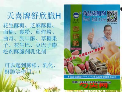 ★功能作用:〔舒欣脆H型 〕用于花生酥糖、芝麻酥糖、面糊、裹粉、煎炸粉、曲奇、到口酥、草糖果子、花生巴糊、豆巴子糊等各類食品,可以起到膨松、乳化、酥脆等作用。
