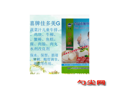 ★功能作用:〔佳多美G型〕用于無磷蔬菜汁兒童牛排、烤腸、脆腸、玉米腸、雞排、豬排、羊肉卷、牛肉卷、鹵牛肉、魚丸、膨化面包糠、肉餅、肉餡、雪花糠、面包糠、面包屑、雞塊、牛柳、魚排、蟹棒、魚糕、魚豆腐、肉腸、肉丸、面糊、辣條等無磷肉制品、水產品、各類食品,起到保水、保型、筋道Q彈、增稠、酸度調節、膨松、增脆等作用。〔佳多美G型〕比較適合高出品率的無磷肉制品。