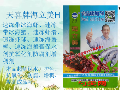 ★功能作用:〔海立美H型〕用于速凍帶冰海蝦、速凍帶冰海蟹、速凍蝦滑、速凍蝦球、速凍海蟹棒、速凍海蟹膏等海水蝦蟹類及其制品,起到保水、護色、抗氧化、防腐、增稠、提高成品率。