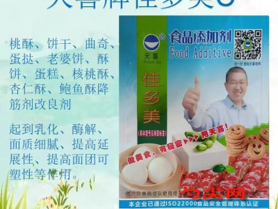 ★商品名:天喜牌佳多美C型 產品名稱:佳多美牌復配乳化酶制劑 型號:JDM-C 本品按照《食品安全國家標準 食品添加劑使用標準GB2760》及補充規定的品種、應用分類、使用范圍、最大使用量、殘留量等科學組方,并且按照《食品安全國家標準 復配食品添加劑通則GB26687》精心配制而成。本品已經通過食品生產許可,保障食品安全。用戶按照本說明的用法用量生產制作的面糊、裹粉、煎炸粉(食品分類號:06.03.02.04)、焙烤食品(食品分類號:07.0)既不會超標也不會超量。