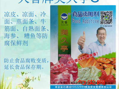 ★功能作用:本品用于涼皮、釀皮、涼面、冷面、炒面條、蒸面條、牛筋面、自熟面條、熱干面、玉米腸、素腸、面筋腸、糯米腸、即食海參、燉魚、糟魚、炸魚、烤魷魚、熏魚、熟魚干、熟魚罐頭、預制肉制品、熟制肉制品等方便濕面制品、肉類制品、熟制水產品、米面雜糧灌腸制品,可以有效抑制食品中微生物的繁殖,防止或延緩食品成分氧化、分解變質,防止食品腐敗變質,延長食品保存期。乳酸鏈球菌素為生物防腐劑,食品更加安全健康。