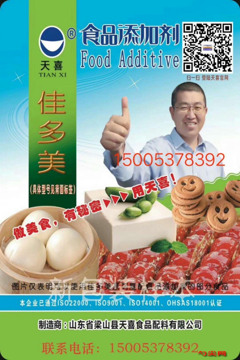 ★商品名:天喜牌佳多美D型(原名:沉立亭A) 產品名稱:佳多美牌復配乳化增稠劑 型號:CLT-A 本品完全按照《食品安全國家標準 食品添加劑使用標準GB2760》及補充規定的品種、應用分類、使用范圍、最大使用量、殘留量等科學組方,并且按照《食品安全國家標準 復配食品添加劑通則GB26687》精心配制而成。本品已經通過食品生產許可,保障食品安全。用戶按照本說明的用法用量生產制作的冷凍飲品(食品分類號:03.0)、蔬菜泥(醬),番茄沙司除外(食品分類號:04.02.02.05)、堅果與籽類的泥(醬),包括花生醬等(食品分類號:04.05.02.04)、焙烤食品餡料及表面用掛漿(食品分類號:07.04)、復合調味料(食品分類號:12.10)、蛋白飲料(食品分類號:14.03)既不會超標也不會超量。★配料表:單雙甘油脂肪酸酯、褐藻酸鈉、黃原膠、羧甲基纖維素鈉、瓜爾膠。