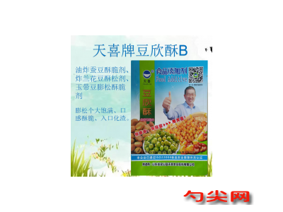 ★商品名:天喜牌豆欣酥B型 產(chǎn)品名稱(chēng):豆欣酥牌復(fù)配熟制堅(jiān)果與籽類(lèi)穩(wěn)定膨松劑 型號(hào):DXS-B 本品按照《食品安全國(guó)家標(biāo)準(zhǔn) 食品添加劑使用標(biāo)準(zhǔn)GB2760》及補(bǔ)充規(guī)定的品種、應(yīng)用分類(lèi)、使用范圍、最大使用量、殘留量等科學(xué)組方,并且按照《食品安全國(guó)家標(biāo)準(zhǔn) 復(fù)配食品添加劑通則GB26687》精心配制而成。本品已經(jīng)通過(guò)食品生產(chǎn)許可,保障食品安全。用戶按照本說(shuō)明的用法用量生產(chǎn)制作的熟制堅(jiān)果與籽類(lèi)(僅限油炸堅(jiān)果與籽類(lèi))(食品分類(lèi)號(hào):04.05.02.01)既不會(huì)超標(biāo)也不會(huì)超量。