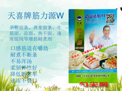 ★商品名:天喜牌筋力源W型 產品名稱:筋力源牌復配增稠劑6 型號:JLY-W 本品按照《食品安全國家標準 食品添加劑使用標準GB2760》及補充規定的品種、應用分類、使用范圍、最大使用量、殘留量等科學組方,并且按照《食品安全國家標準 復配食品添加劑通則GB26687》精心配制而成。本品已經通過食品生產許可,保障食品安全。用戶按照本說明的用法用量生產制作的各類食品(配料表中成分在GB2760表A.1中有限量要求的食品除外;配料表中成分在GB2760表A.3中所例外的食品除外)。既不會超標也不會超量。