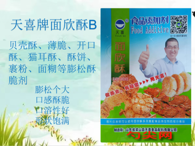 ★商品名:天喜牌面欣酥B型 產品名稱:面欣酥牌復配穩定膨松劑5 型號:MXS-B 本品完全按照《食品安全國家標準 食品添加劑使用標準GB2760》及補充規定的品種、應用分類、使用范圍、最大使用量、殘留量等科學組方,并且按照《食品安全國家標準 復配食品添加劑通則GB26687》精心配制而成。本品已經通過食品生產許可,保障食品安全。用戶按照本說明的用法用量生產制作的裹粉、面糊、煎炸粉(食品分類號:06.03.02.04)、油炸面制品(食品分類號:06.03.02.05)、焙烤食品(食品分類號:07.0)既不會超標也不會超量。