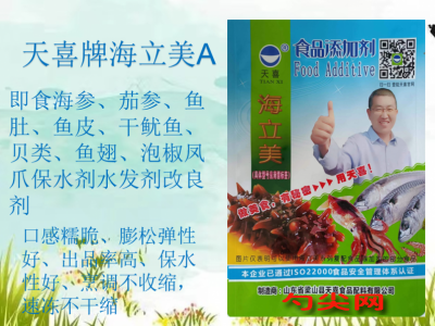 ★商品名:天喜牌海立美A型 產品名稱:海立美牌復配熟制水產品水分保持膨松劑 型號:HLM-A 本品按照《食品安全國家標準 食品添加劑使用標準GB2760》及補充規定的品種、應用分類、使用范圍、最大使用量、殘留量等科學組方,并且按照《食品安全國家標準 復配食品添加劑通則GB26687》精心配制而成。本品已經通過食品生產許可,保障食品安全。用戶按照本說明的用法用量生產制作的熟制水產品(食品分類號:09.04) 、預制肉制品(食品分類號:08.02)、熟肉制品(食品分類號:08.03)既不會超標也不會超量。