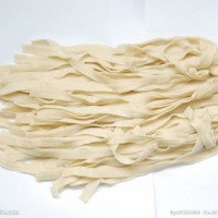 ①機(jī)器軋鮮面條配方:高筋面粉95斤、谷朊粉2-5斤、鹽0.3-0.5斤、筋力源F型0.2-0.3斤、美久亭F100克(本品為復(fù)配防腐劑,現(xiàn)做現(xiàn)賣的鮮面條可以不加防腐劑。長(zhǎng)時(shí)間保存的鮮面條添加美久亭,同時(shí)采用食用酒精噴霧消毒。鮮面條儲(chǔ)存溫度8-15℃比較合適)、水30-35斤。工藝:將面粉、谷元粉干拌均勻。再將筋力源F型用30℃左右溫水溶解后和入面粉中,再把食用鹽、美久亭F直接攪拌加入和面水,然后攪拌加入混合好的面粉中,將和好的絮狀面團(tuán)靜止醒發(fā)20-50分鐘,然后放入壓面機(jī)即可軋鮮面條(一般軋面次數(shù)5-8遍,軋面次數(shù)越多,面條越筋道,但過度軋面會(huì)導(dǎo)致面條透明)。軋好的鮮面條必須撒點(diǎn)干淀粉,防止粘連,然后放冷柜8-15℃保鮮存放。