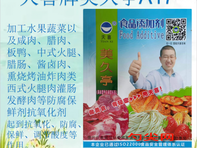 ★功能作用: 本品用于番茄醬、果醬、蔬菜泥醬、果糕、果干、蜜餞涼果、山楂卷、山楂條、山楂糕、加工水果、加工蔬菜、腌臘肉制品類(如咸肉、臘肉、板鴨、中式火腿、臘腸) 、醬鹵肉制品類、熏、燒、烤肉類、油炸肉類、西式 火 腿 (熏烤、煙熏、蒸煮火腿)類、肉灌腸類、發酵肉制品類等食品,起到抗氧化、防腐、保鮮、調節酸度等作用。