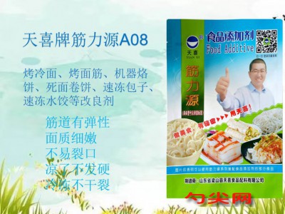 ★功能作用:[筋力源A08型]制作烤冷面、烤面筋、機器烙餅、燙面油餅、死面卷餅、烤鴨餅、煎餃、手撕包等焙烤食品筋道有彈性、面質細嫩、不易裂口、涼了不發硬,冷凍不干裂;制作速凍水晶包子生坯、速凍米糕、速凍包子、速凍水餃、速凍餛飩、饅頭、花卷、花糕 、麻圓等冷凍米面制品速凍不裂口、防止脫水干縮,[筋力源A08型]不會導致面品變色褪色。[筋力源A08型]還可用于冷凍火鍋油條、豆沙油炸糕、速凍玉米蔬菜豬肉蒸煎餃、冷凍烤鴨餅、速凍香菇素菜包等。
