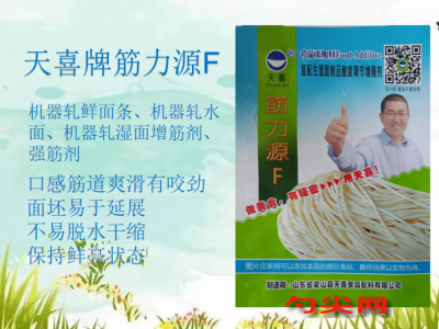 ★溫馨提示:1.本品含食用純堿(碳酸鈉),生鮮濕面存放3個小時以上就會變色,可以添加0.06%富馬酸(護色劑)進行解決。2.本品不含防腐劑,沒有防腐保鮮作用,生鮮濕面保鮮可以添加0.2%美久亭F,同時采用食用酒精噴霧殺菌消毒。生鮮濕面必須放冷柜8-15℃保鮮存放。3.本品不適用于手工生濕面制品,手工生濕面制品可以使用筋力源M型和筋力源H型。4.生濕面制品(食品分類號:06.03.02.01)不包括采用雜糧(比如:玉米面、蕎麥面等)面粉制作的面條、豆萁等雜糧制品,生產加工雜糧制品(食品分類號:06.04.02)可以使用筋力源W型。5.加工生產黃色生濕面制品可以添加0.1%七彩滴牌梔子黃,直接加入和面水中即可。6.夏天和好的面團容易發酵,因此弛面時必須放在低溫10-15℃冷柜中。6.本品與筋力源H(耐煮時間長)或佳多美L(口感軟彈)配合使用效果更佳。
