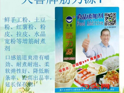 ★功能作用: [筋力源Y型]制作的粉絲粉條、粉皮、拉皮、寬粉、自熟粉條等口感筋道爽滑有嚼勁、耐煮耐泡、柔軟彈性好、降低斷條率、提高出品率,延長保存期。特別適用于土豆淀粉、紅薯淀粉、木薯淀粉、綠豆淀粉制作鮮粉條、鮮粉皮、鮮拉皮、鮮水晶寬粉等。