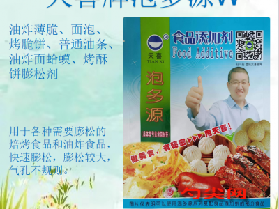 ★功能作用: 本品用于油炸薄脆、面泡、烤脆餅、普通油條、油炸面蛤蟆、烤酥餅等各類食品可以起到膨松、穩定、酸度調節等作用。主要用于各種需要膨松的焙烤食品和油炸食品,快速膨松,膨松較大,氣孔不規則。