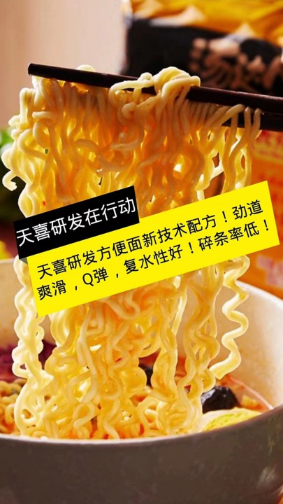 天喜研發方便面新技術配方!勁道爽滑,Q彈,復水性好!碎條率低!