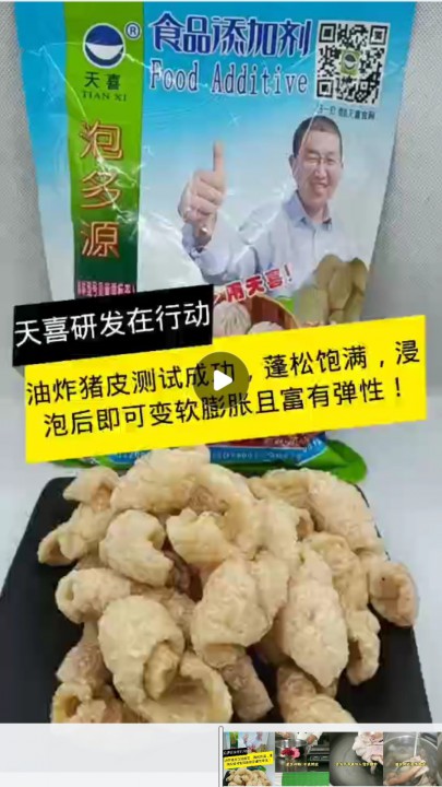 油炸豬皮測(cè)試成功,蓬松飽滿,浸泡后即可變軟膨脹且富有彈性!